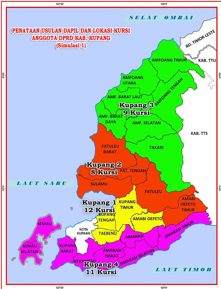 - Partai Demokrat menyetujui enam kecamatan Amfoang menjadi Dapil tersendiri atau Dapil 2014 ditata ulang menjadi 5 (lima) dapil. (Simulasi 3)