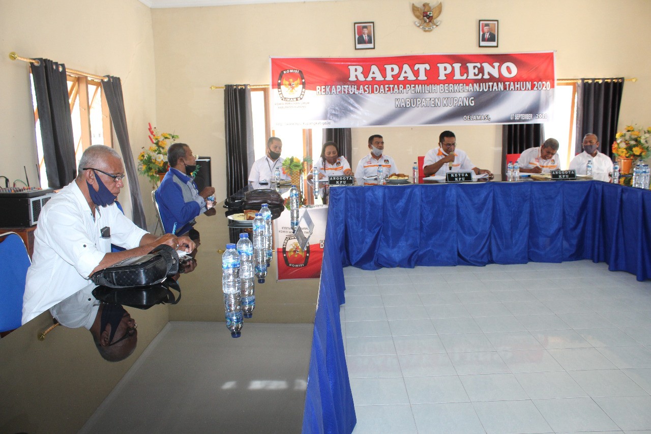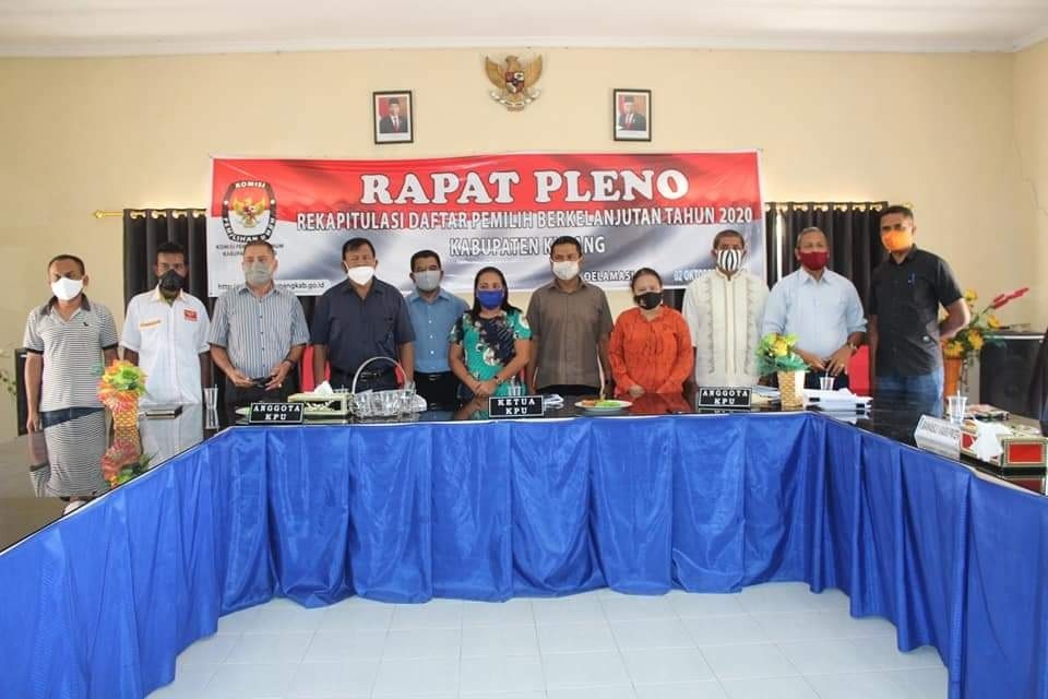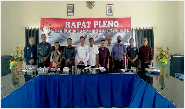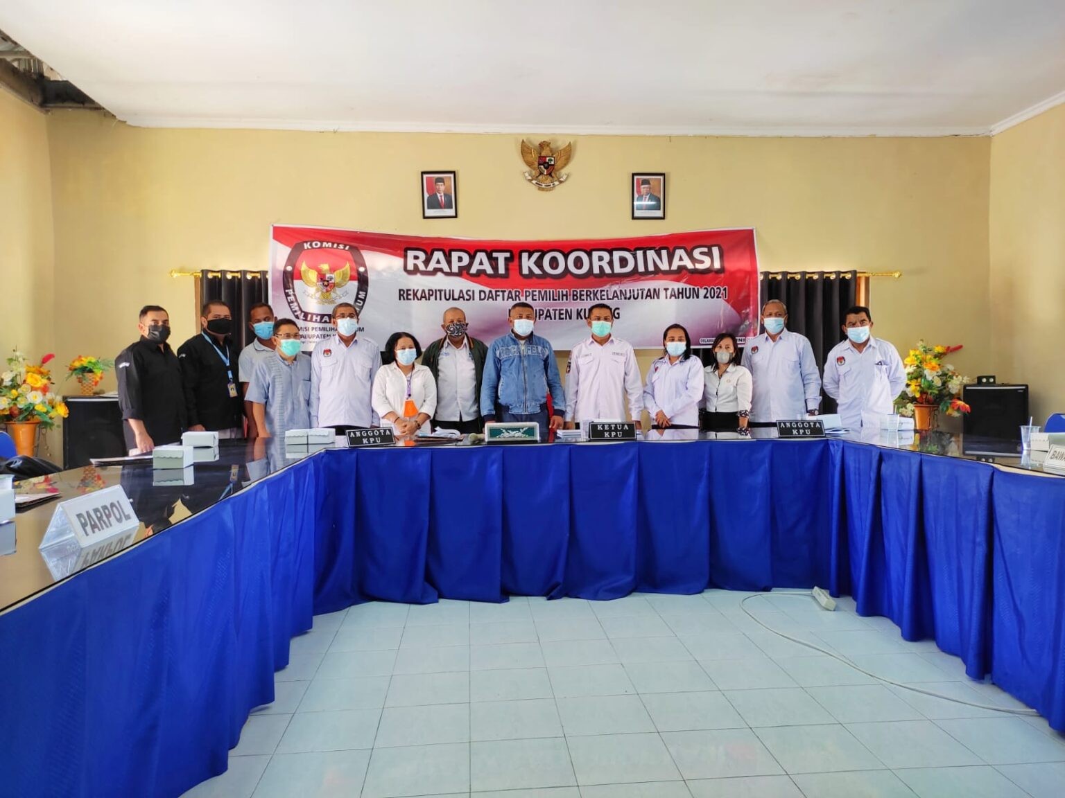 KPU KABUPATEN KUPANG GELAR RAPAT KOORDINASI REKAPITULASI DATA PEMILIH BERKELANJUTAN TRIWULAN II TAHUN 2021 Oelamasi – Komisi Pemilihan Umum Kabupaten Kupang menggelar Rapat Koordinasi (Rakor) Rekapitulasi Data Pemilih Berkelanjutan Periode Triwulan II Tahun 2021, pada Rabu 30 Juni 2021. Bertempat di Aula KPU Kabupaten Kupang, Rakor dimulai pukul 10.00 wita dibuka oleh Ketua KPU Kabupaten Kupang. Kegiatan ini dihadiri oleh Dinas Kependudukan dan Pencatatan Sipil Kabupaten Kupang, Bawaslu Kabupaten Kupang dan pimpinan Partai Politik. Dalam sambutan dan arahannya Ketua KPU Kabupaten Kupang, Elyas Lomi Rihi menyampaikan “Dasar kegiatan PDB merupakan amanah Undang-Undang No 7 Tahun 2017 tentang Pemilihan Umum Pasal 20 huruf (I) bahwa KPU Kab/kota berkewajiban melakukan pemutakhirann dan memelihara data pemilih secara berkelanjutan dengan memperhatikan data kependudukan sesuai ketentuan Peraturan perundang-undangan” jelas Elyas. “Atas amanah inilah maka KPU RI menterjemahkan dalam surat KPU no 181 dan 132 Tahun 2020 perihal Pemutakhiran Data Pemilih Berkelanjutan dengan langkah-langkah Berkoordinasi dengan pemerintah daerah dalam hal ini Dinas Kependudukan dan Pencatatan Sipil sebagai dinas yang menangani administrasi kependudukan, kemudian melakukan Rapat Koordinasi setiap bulan dengan Partai Politik, Bawaslu, Disdukcapil dan Instansi lainnya, membuat membuat aplikasi mobile PDB, melakukan trobosan dan sosialisasi dan terakhir hasil PDB diumumkan pada papan pengumuman atau laman KPU Kabupaten Kupang.” Lanjutnya. Sementara itu Komisioner Divisi Program dan Data Samsul Gole memaparkan bahwa KPU Kabupaten Kupang telah melakukan Rekapitulasi Data Pemilih Berkelanjutan sampai pada triwulan II ini dengan jumlah pemilih sebanyak 222.312 (Dua Ratus Dua Puluh Dua Tiga Ratus Dua Belas) Pemilih. Dengan rincian pemilih laki-laki berjumlah 110.306 (Seratus Sepuluh Tiga Ratus Enam) pemilih dan pemilih perempuan sebanyak 112.006 (Seratus Dua Belas Enam) pemilih, yang tersebar di 24 Kecamatan, 177 Desa. Komisi Pemilihan Umum Kabupaten Kupang membuka layanan tanggapan masyarakat terkait Pemilih Baru/Pemula, meninggal dunia, alih status pindah domisili maupun perbaikan nama/data lainnya bagi seluruh masyarakat Kabupaten Kupang baik secara Online melalui link Form Pemutakhiran Data ini, maupun mendatangi secara langsung kantor Komisi Pemilihan Umum Kabupaten Kupang pada jam kerja dengan membawa dokumen pendukung (KTP-el dan Kartu Keluarga). Menutup sambutannya, Ketua KPU Kabupaten Kupang menyampaikan “Maksud dari kegiatan PDB adalah untuk memperbaharui data pemilih seperti menambahkan pemilih pemula atau baru yang belum terdaftar dalam daftar pemilih dan mengeluarkan yang tidak lagi memenuhi syarat (TMS) seperti meninggal dunia, pindah domisili ke luar wilayah Kabupaten Kupang dan alih status dari masyarakat biasa menjadi TNI/POLRI serta melakukan perubahan elemen data pemilih, hal ini penting dilakukan agar mendapatkan data yang akurat dan mutakhir guna mempermudah proses pemutakhiran data dan penyusunan daftar pemilih pada Pemilu/Pemilihan berikutnya”. Laporan Pemutakhiran Data Pemilih Berkelanjutan (PDPB) Kabupaten Kupang Periode Bulan Mei & Juni 2021 dan Lampiran Rinciannya dapat diunduh di bawah ini : Laporan PDPB Periode Mei 2021 Lampiran Rincian Laporan PDPB Periode Mei 2021 Laporan PDPB Periode Juni 2021 Lampiran Rincian Laporan PDPB Periode Juni 2021