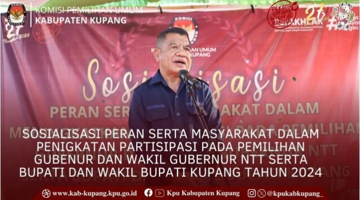 Oelamasi,- KPU Kabupaten Kupang menggelar kegiatan sosialisasi peran serta masyarakat dalam peningkatan partisipasi pada pemilihan Gubernur dan Wakil Gubernur NTT serta Bupati dan Wakil Bupati Kupang Tahun 2024.