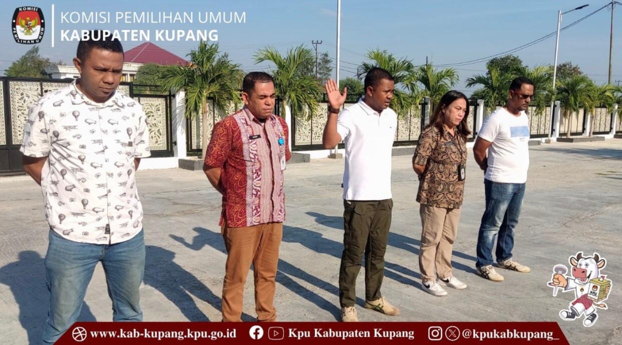 Sebelum memulai kegiatan, terlebih dahulu dilakukan apel pagi yang dipimpin oleh Sekretaris KPU Kabupaten Kupang Banla Yuan Permata Kinanggi.
