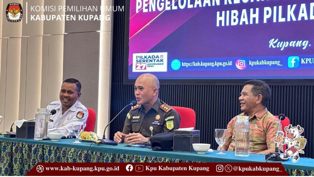 Kupang,- KPU Kabupaten Kupang melaksanakan kegiatan Bimbingan Teknis Pengelolaan Keuangan dan Pertanggungjawaban Hibah Pilkada Tahun 2024, Kamis 18 Juli 2024 di Hotel Neo Kupang. Ketua KPU Kabupaten Kupang Nichson Manggoa dalam sambutannya mengucapkan terimakasih untuk Sekretariat PPK dan Sekretariat PPS yang memiliki kesibukan namun tetap berpartisipasi dalam rangka sukseskan Pilkada Tahun 2024. Nichson menghimbau agar hubungan kerja antar sekretariat PPK dengan PPK serta Sekretariat PPS dengan PPS tetap dijaga dan terus kompak agar pengelolaan keuangan Pilkada Tahun 2024 berlangsung dengan baik. kegiatan dilanjutkan dengan materi yang dibawakan oleh perwakilan Polres Kupang IPDA. Tobias D. Naraha (Kanit Tipikor) dan Kepala Kejaksaan Negeri Kabupaten Kupang Muhammad Ilham, S.H.,M.H terkait Mitigasi Resiko Pengelolaan dan Pertanggungjawaban Keuangan. Hadir dalam kegiatan ini perwakilan Polres Kupang, Kepala Kejaksaan Negeri Kabupaten Kupang, Ketua PPK, Sekretaris PPK dan Sekretaris PPS se-Kabupaten Kupang.***