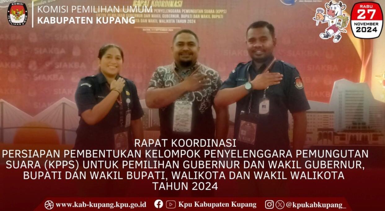 Oelamasi,- Komisi Pemilihan Umum (KPU) Kabupaten Kupang mengikuti Rapat Koordinasi Persiapan Pembentukan Kelompok Penyelenggara Pemungutan Suara (KPPS) untuk Pemilihan Gubernur dan Wakil Gubernur, Bupati dan Wakil Bupati, Walikota dan Wakil Walikota Tahun 2024.