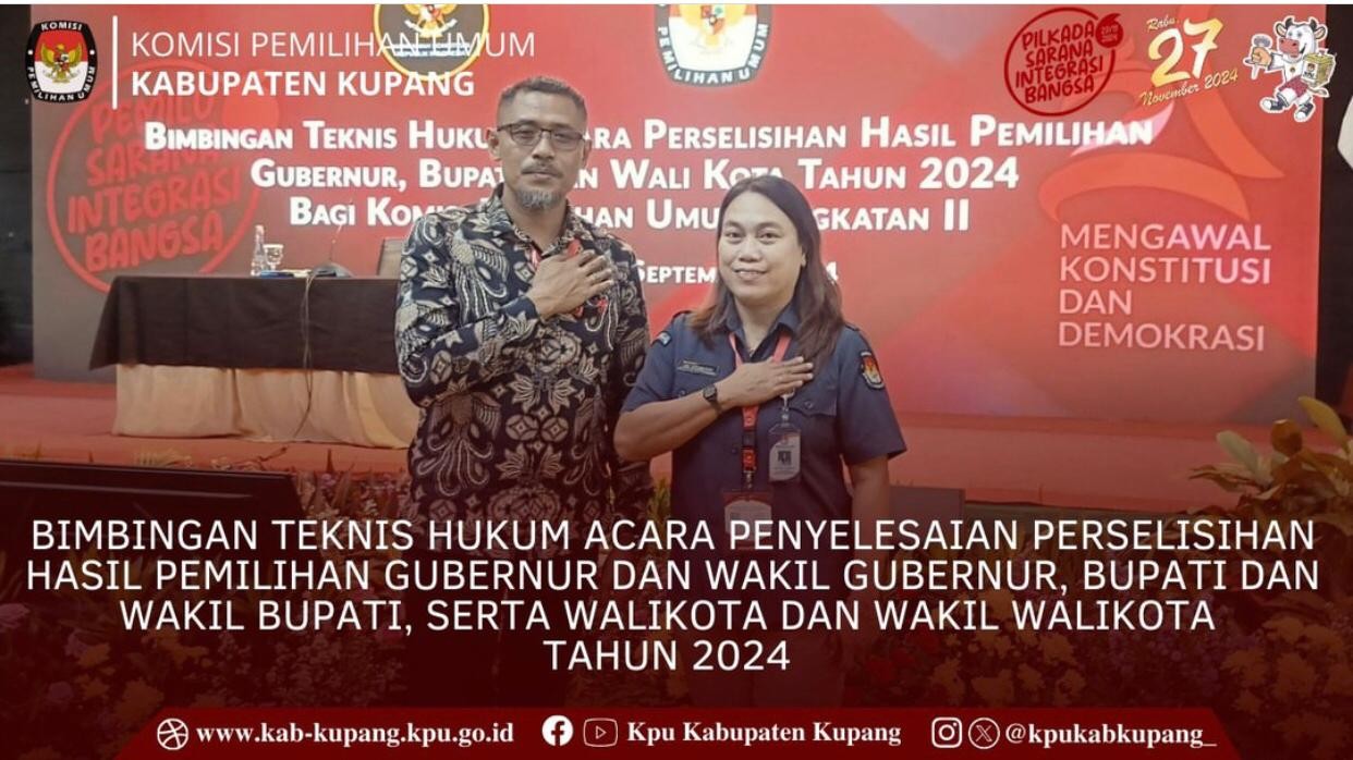 Oelamasi,- Anggota KPU Kabupaten Kupang, Polce R.T Dethan bersama Kasubbag Hukum dan Teknis Penyelenggara KPU Kabupaten Kupang mengikuti Bimbingan Teknis Hukum Acara Penyelesaian Perselisihan Hasil Pemilihan Gubernur dan Wakil Gubernur, Bupati dan Wakil Bupati, serta Walikota dan Wakil Walikota Tahun 2024.