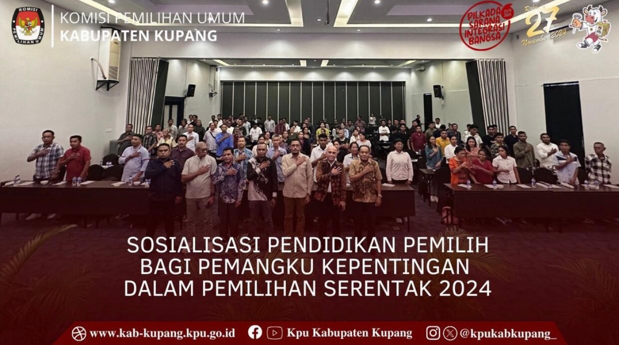 Kupang,- KPU Kabupaten Kupang melaksanakan Sosialisasi Pendidikan Pemilih Bagi Pemangku Kepentingan dalam Pemilihan Serentak 2024, Sabtu (21/9) di Hotel Neo Aston Kupang.